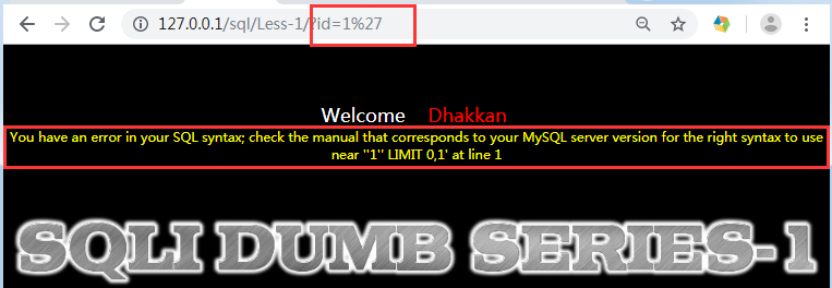尝试在URL后添加?id=1’回车,页面报SQL语法错误。