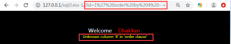 输入?id=1′ order by 4 –+ 报错,说明该数据表中字段数为3。