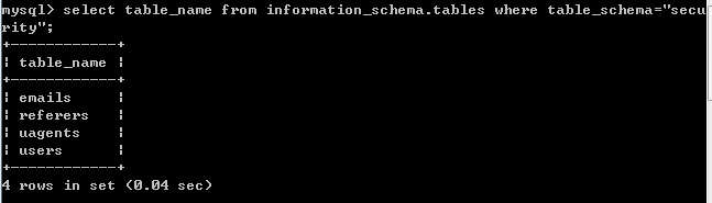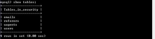 这个实验用到的数据库名为security,所以我们选择security来执行命令。