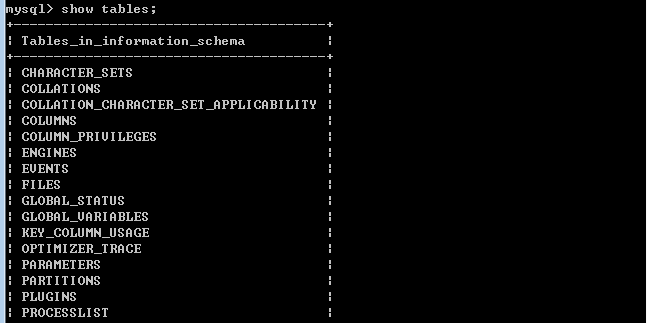 information_schema数据库中有3张重要的表,分别是SCHEMATA、TABLES和COLUMNS。