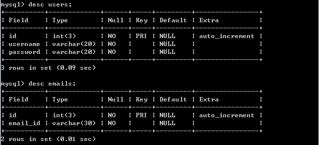 - COLUMNS表存储该用户创建的所有数据库的库名、表名和字段名,我们需要记住该表中记录数据库库名、表名和字段名的字段名为TABLE_SCHEMA、TABLE_NAME和COLUMN_NAME。