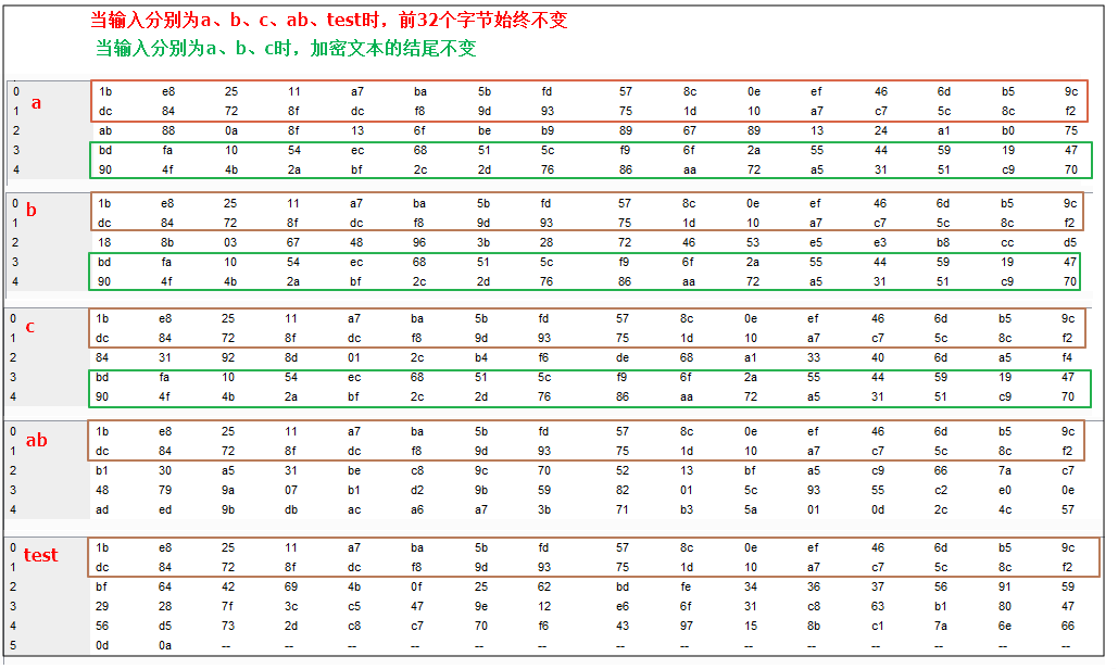 一是随着输入文本的不同,加密文本的前32个字节始终相同,不会改变。这意味着get的参数值始终以相同的文本开头。