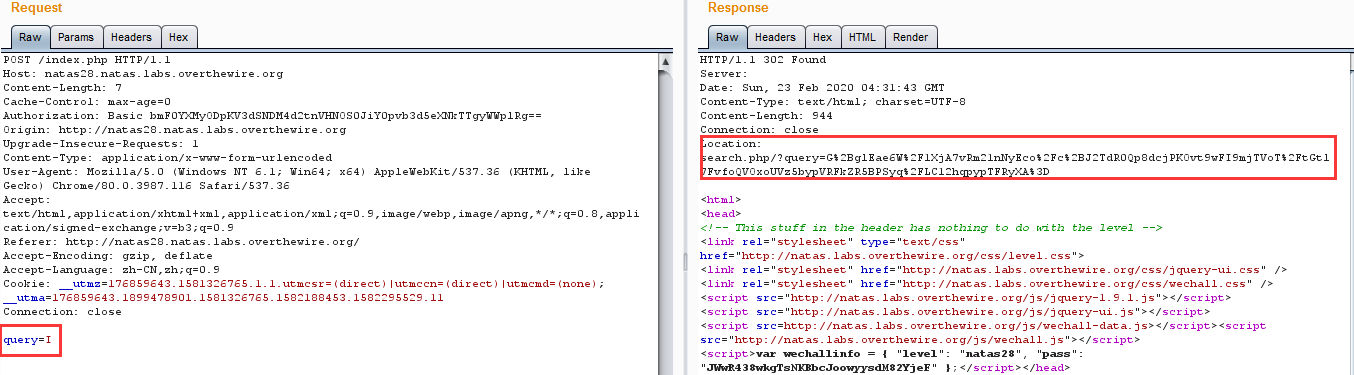 burp抓包发现,流程是post表单提交一个明文后返回一个重定向,然后get请求一个加密参数返回查询结果。这个加密的参数一定以某种方式包含了我们的输入。