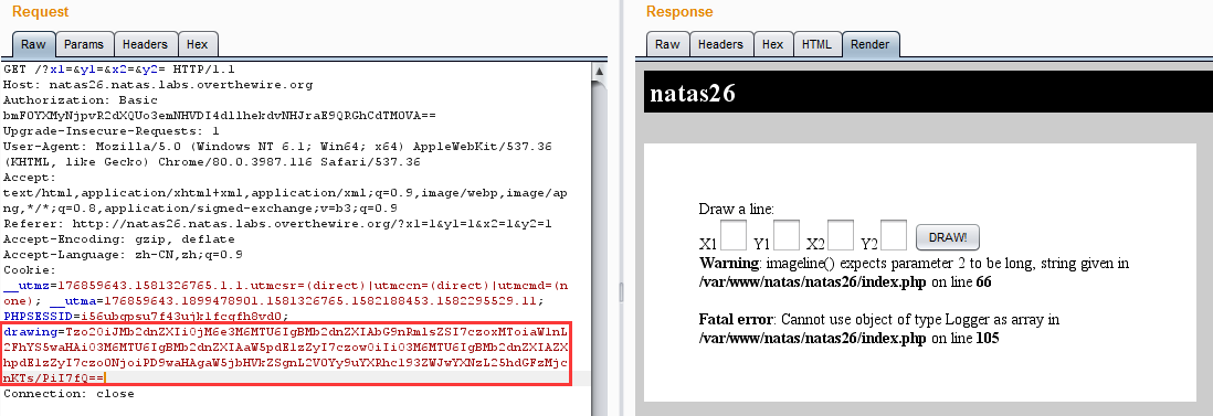burp抓包,把字符串覆盖到cookie[drawing]中,重新发送请求。
