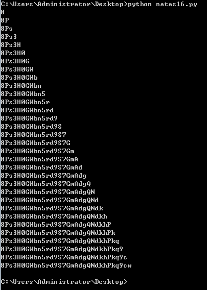 auth=requests.auth.HTTPBasicAuth('natas16','WaIHEacj63wnNIBROHeqi3p9t0m5nhmh')