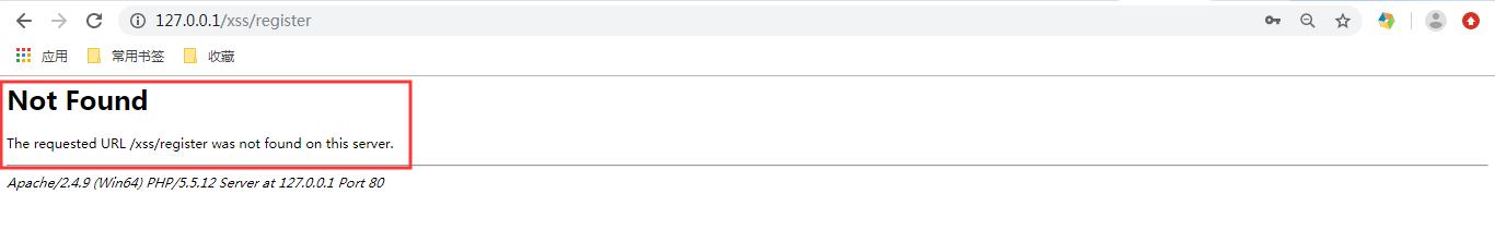 6.打开网页(http://127.0.0.1/xss),点击注册,注册一个用户,此时页面会报错Not Found。