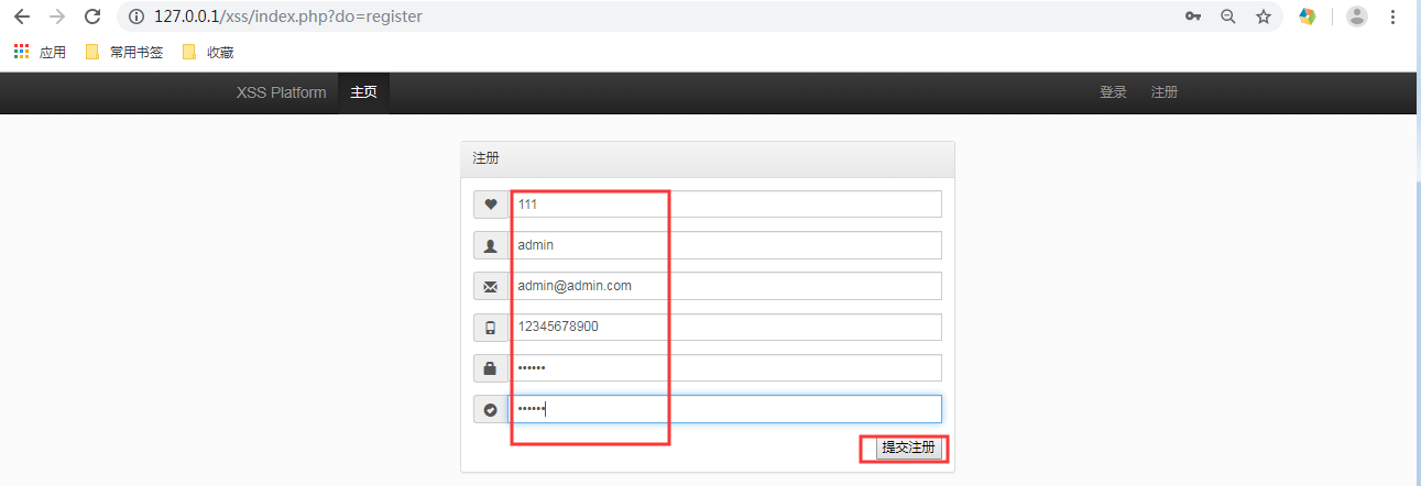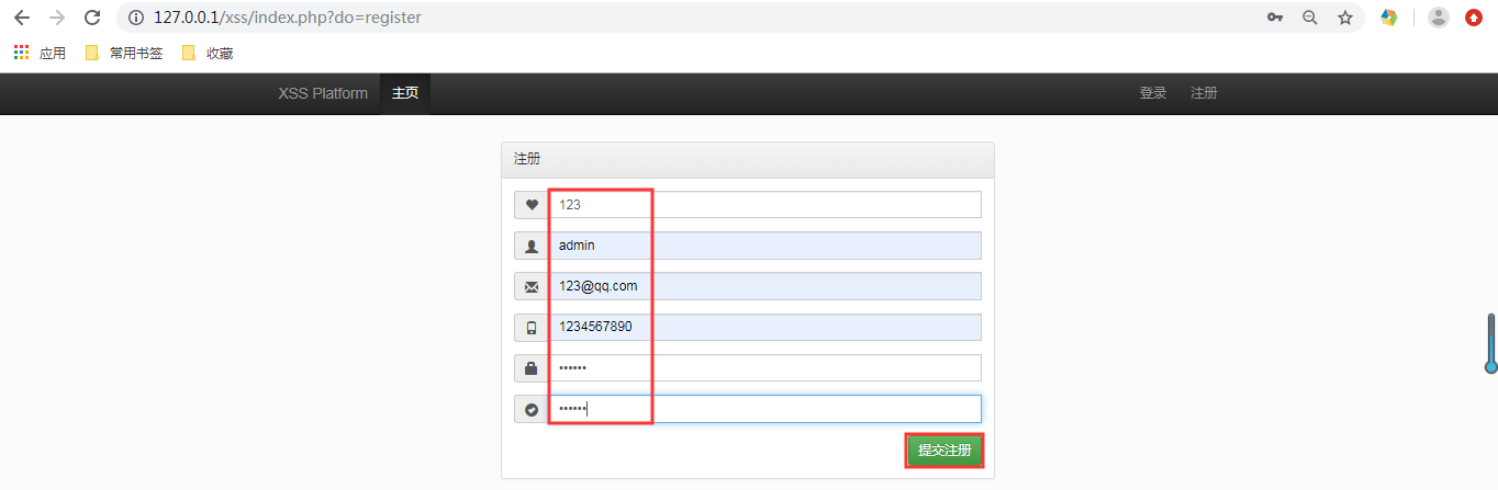 - 将www\xss\themes\default\templates\register.html中的btn btn-success改为submit