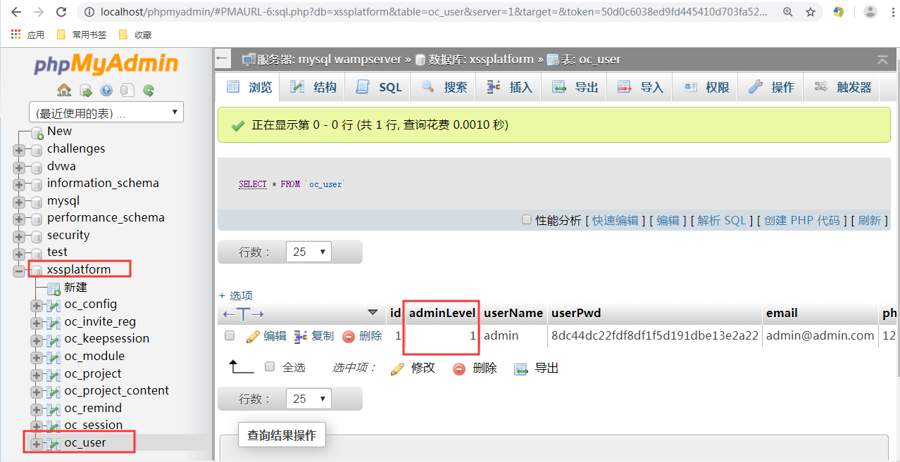 9.到数据库中把oc_user表中的用户的adminLevel值改为1,这样你就可以管理邀请码了。