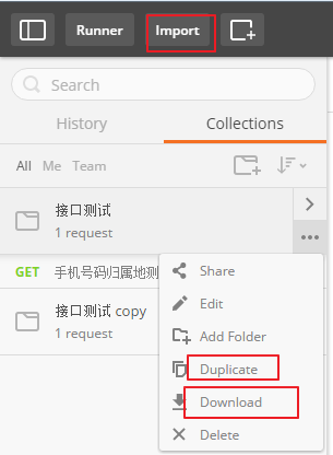 Download可以把这个文件夹以及下面的请求下载到本地分享给别人,别人可以点击Import导入。