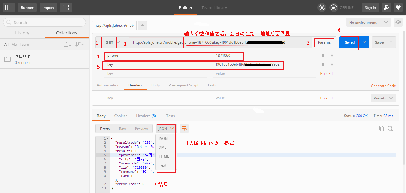 4.下面我们来进行一个实例:测试手机号码归属地接口