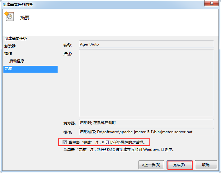 这样,当我们在使用Jmeter进行分布式负载测试时,就不需要每次重启远程负载机时都要再去启动一次Agent程序了,因为计划任务会帮助我们自动重启。