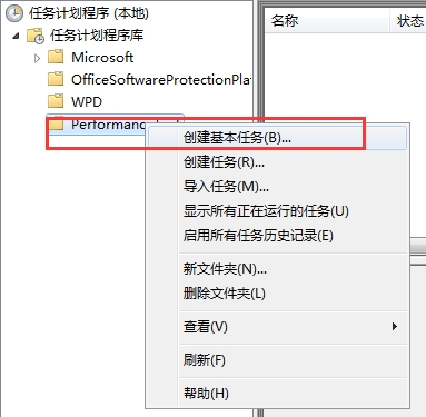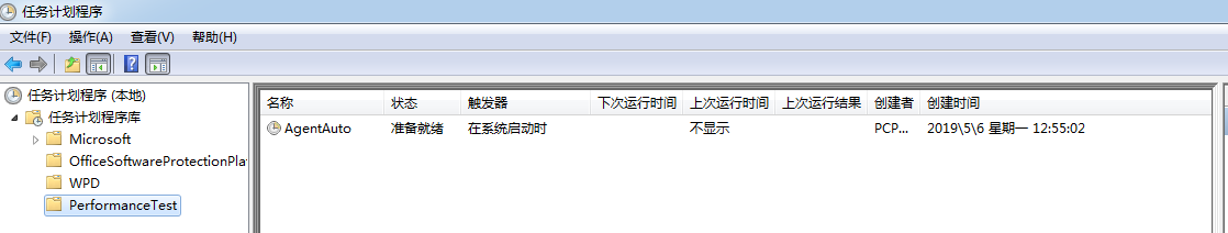 1.打开菜单栏-附件-系统工具-任务计划程序,新建PerformanceTest目录。