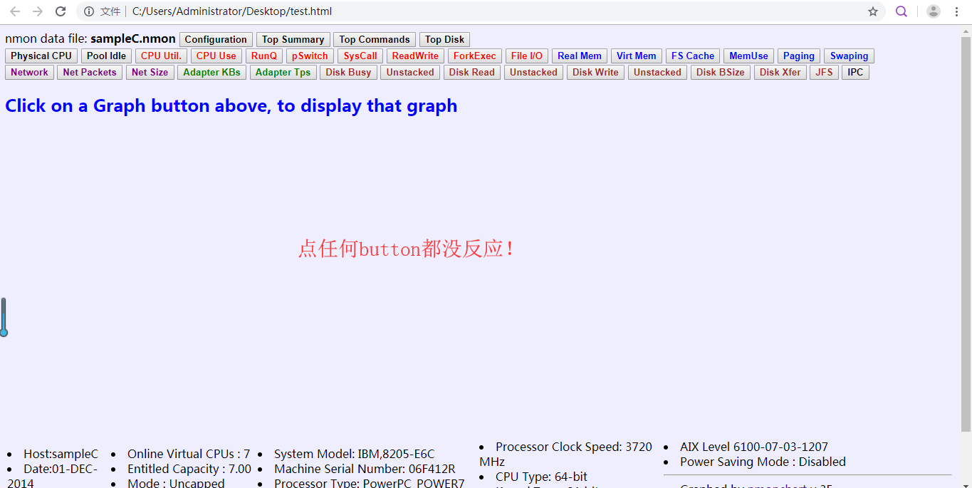 另外,我当时执行的nmon命令是./nmon -s1 -c720 -f -m /root/nmon-test-result/,估计可能是我获取的快照数量过多导致。因为官网说:我建议您将快照数量保持在300左右,以避免文件过大出现问题。图表看起来也会更好。