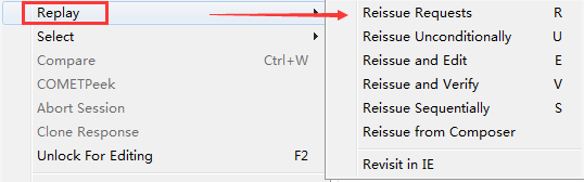 - Reissue Requests R 重新发送请求,和菜单栏上的Replay按钮是一样的功能