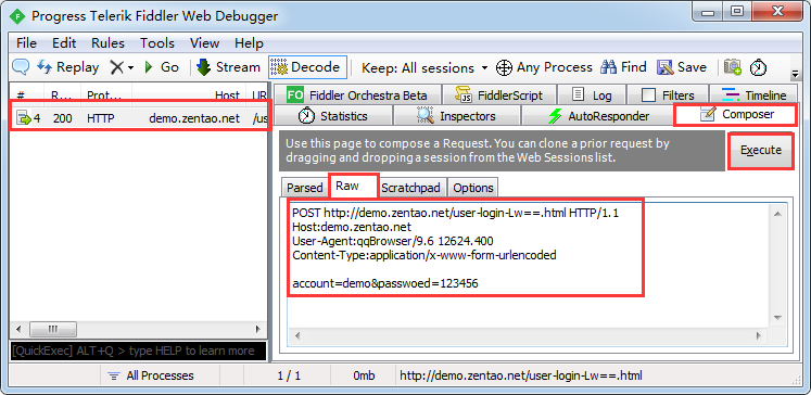 在web会话列表中,可以将捕获到的HTTP请求拖拽到Composer中,编辑后再发送。