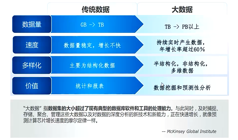 Variety(多样性):数据类型复制,超过80%的数据是非结构化的