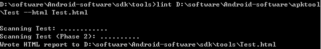 Lint也可以通过命令行的方式对工程进行测试,并同时产生测试报告。在终端中输入: