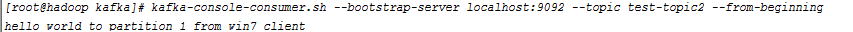 [root@hadoop kafka]# kafka-console-consumer.sh --bootstrap-server localhost:9092 --topic test-topic2 --from-beginning