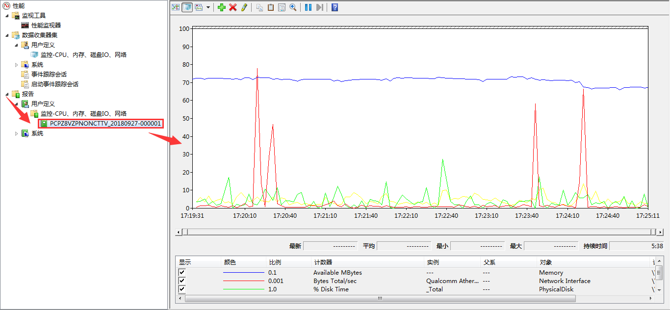 这个报告已经在本地D:\监控-CPU、内存、磁盘IO、网络\PCPZ8VZPNONCTTV_20180927-000001\DataCollector01.blg文件中保存,可随时打开查看。