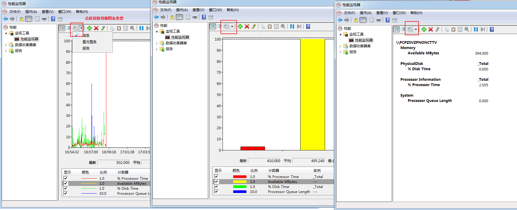 6.图表类型一共有3种:线条、直方图和报告。可以根据情况任意切换