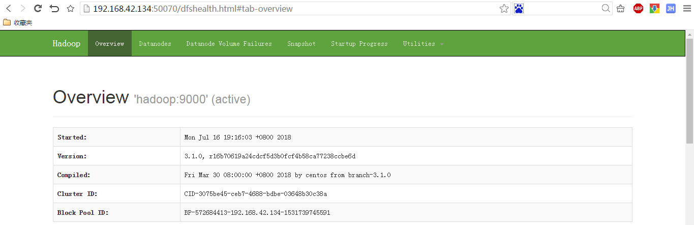 [root@hadoop ~]# hdfs namenode -format #中间没有报错并且最后显示如下信息表示格式化成功 ... /************************************************************ SHUTDOWN_MSG: Shutting down NameNode at hadoop/192.168.42.134 ************************************************************/
