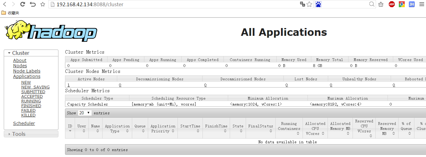 [root@hadoop hadoop]# jps #显示以下几个进程说明启动成功 96662 Jps 95273 DataNode #可有可无 95465 SecondaryNameNode #重要 95144 NameNode #重要 95900 NodeManager #可有可无 95775 ResourceManager #非常重要