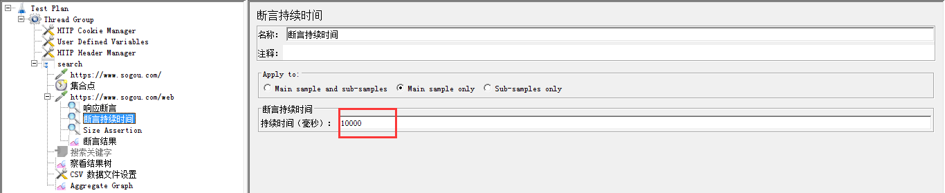 2.断言持续时间(判断响应时间不能超过多少毫秒)