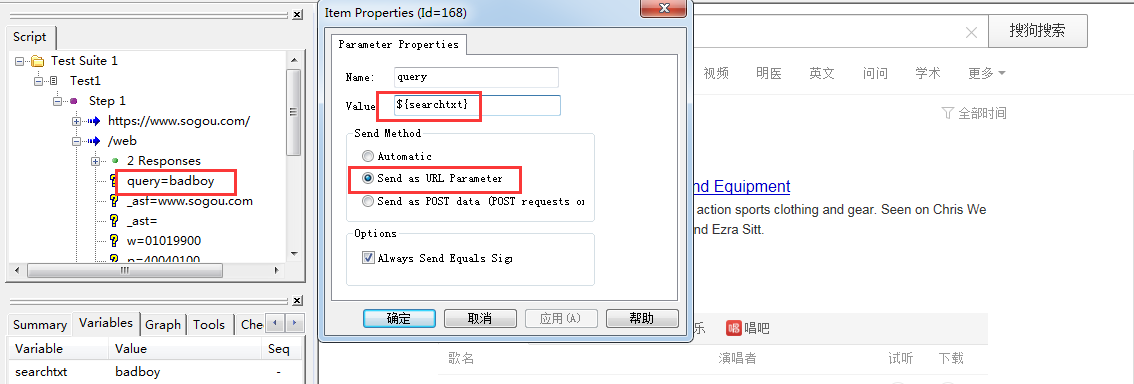 右击“query=Badboy”–“Properties”–输入value为${searchtxt},其他保持默认–>确定