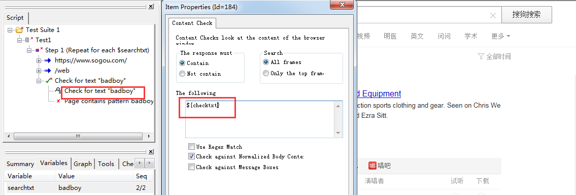 右击“Check for text “badboy””–>“Properties”–>输入value为${searchtxt},其他保持默认–>确定