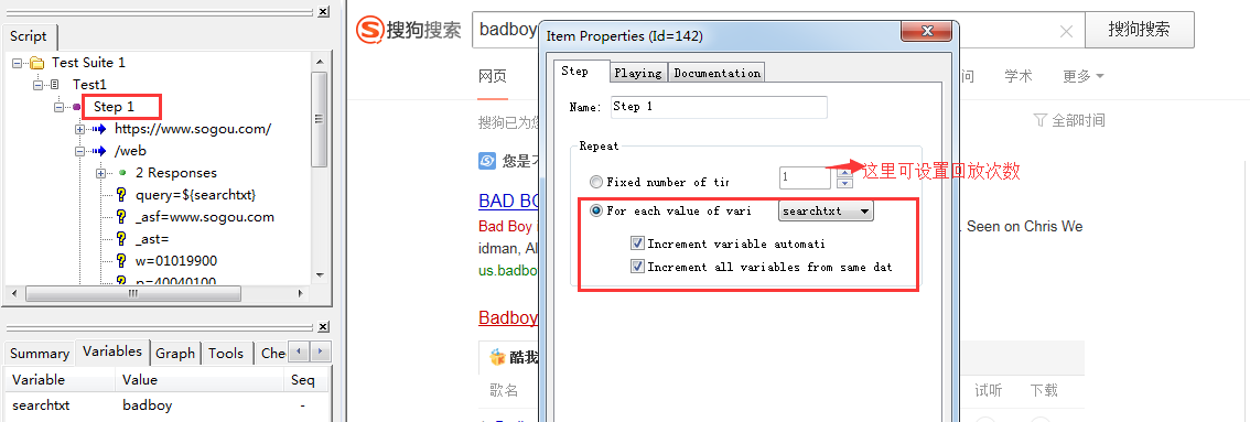 右击“Step 1”–>“Properties”–>选中“For each value of vari (searchtxt)”–>确定