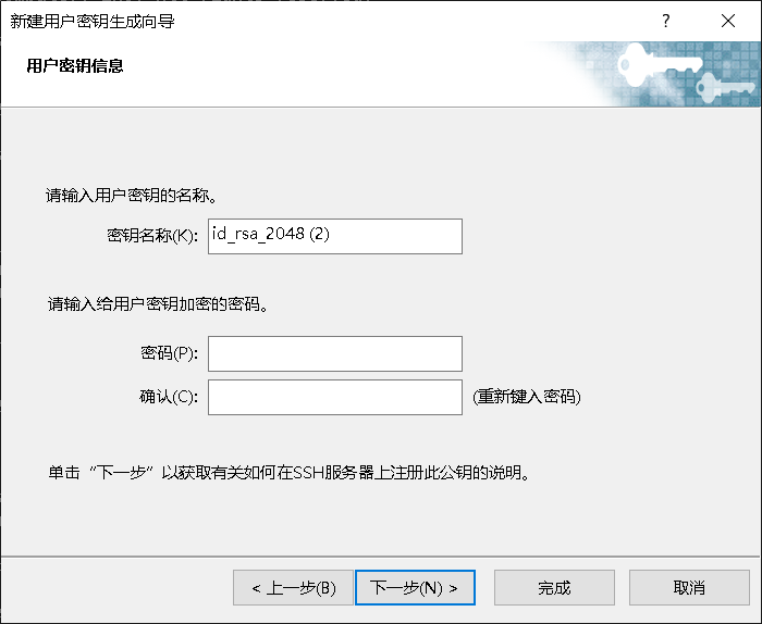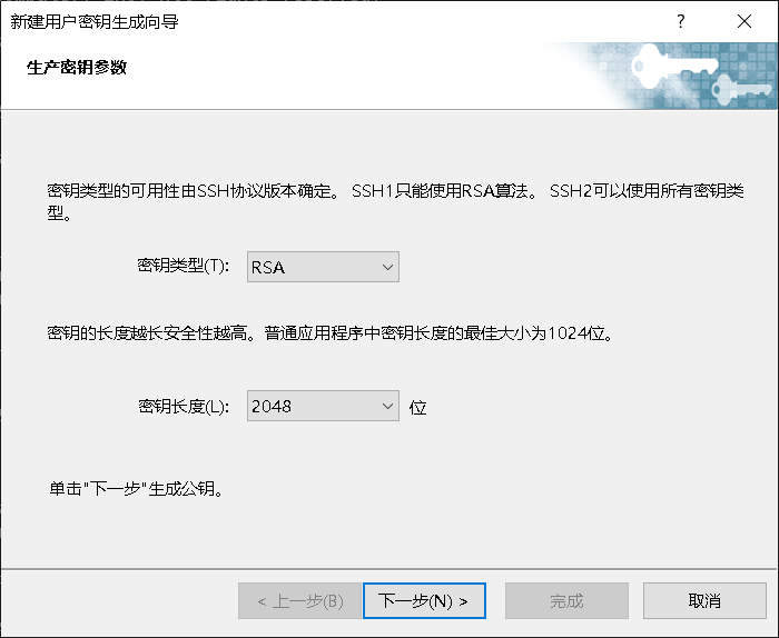 秘钥类型默认RSA 密钥长度默认2048就可以