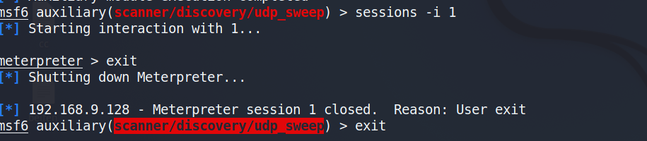 由于效果不明显 现在我们关闭session1 meterpreter