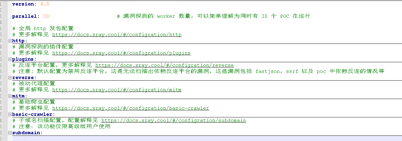 下面是xray配置文件的结构,相比老外的配置文件,中国人自己写的工具看起来真舒服