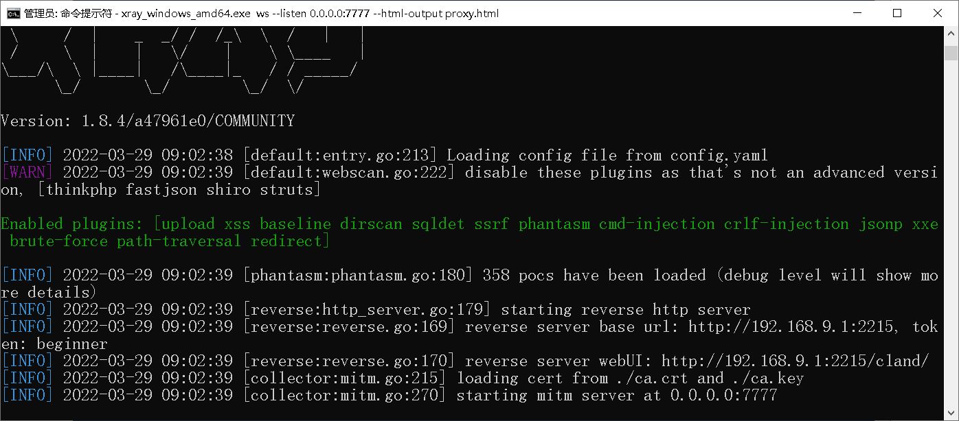 xray_windows_amd64.exe webscan --plugins cmd-injection,sqldet --listen 127.0.0.1:7777