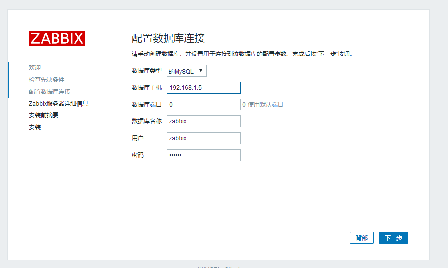 DBHost=localhost #数据库地址 DBName=zabbix #数据库名字 DBUser=zabbix #数据库用户 DBPassword=zabbix #数据库密码