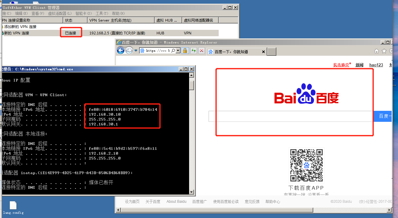 连接后在刷新一下网页,发现就可以上网了,得分配到了192.168.30.10这个ip(这个可以设置的)