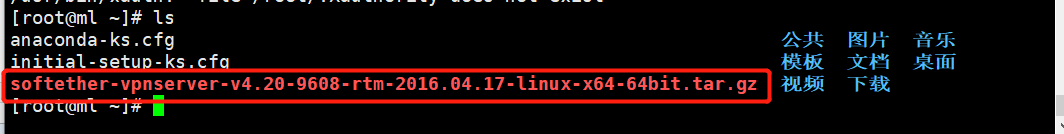 [root@ml ~]# tar xf softether-vpnserver-v4.20-9608-rtm-2016.04.17-linux-x64-64bit.tar.gz
