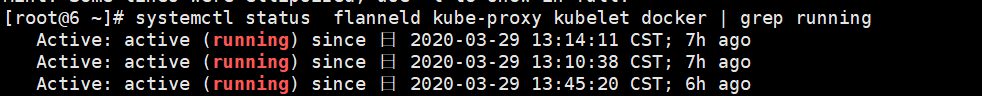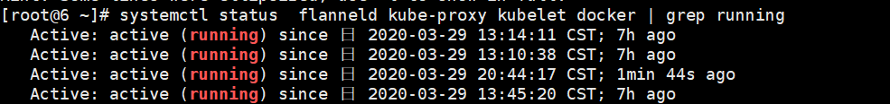 [root@6 ~]# systemctl status flanneld kube-proxy kubelet docker | grep running