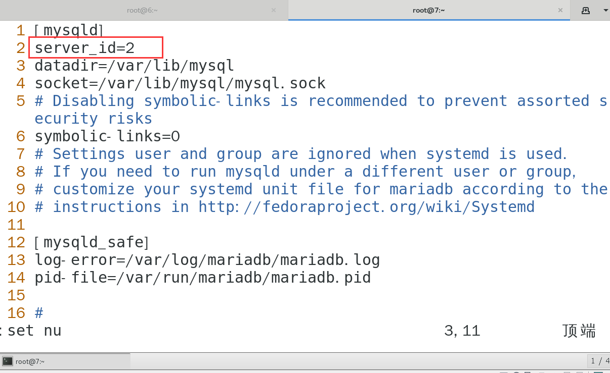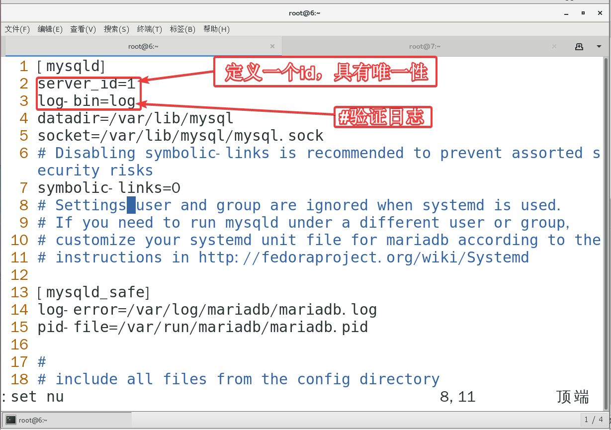 [root@master ~]# vim /etc/my.cnf #修改配置my.cnf文件。