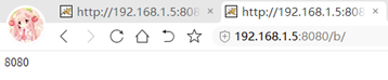 输入地址192.168.1.5:9090/b/会自动跳转到Tomcat:192.168.1.5:8081/b/