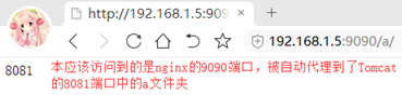 输入地址192.168.1.5:9090/a/会自动跳转到Tomcat:192.168.1.5:8080/a/