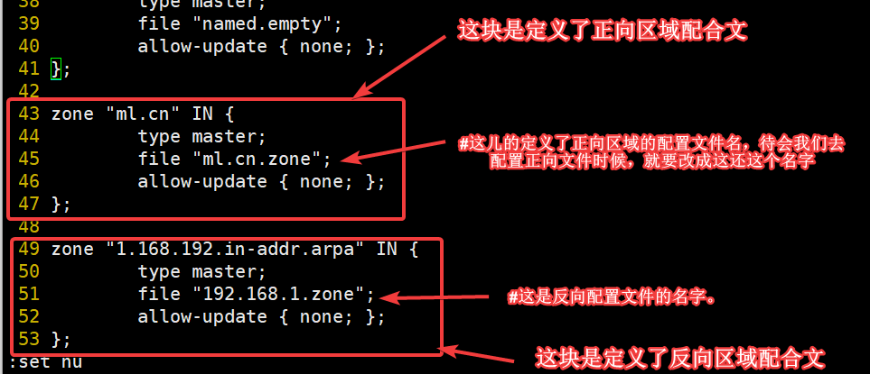 [root@ml ~]# vim /etc/named.rfc1912.zones