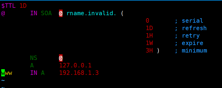 [root@localhost named]# cp -a named.loopback 192.168.1.zone