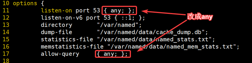 [root@localhost ~]# vim /etc/named.conf #修改主配置文件