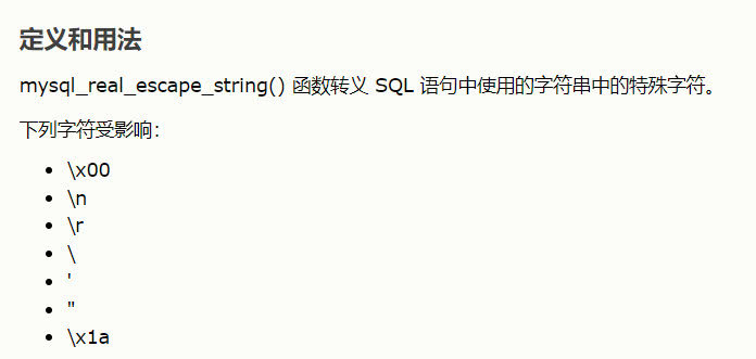 关于转义函数,我们需要重点关注:addslashes(),mysql_escape_string()和mysql_real_escape_string()。这几个函数,在参数插入数据库时会对特殊字符进行转义,但是保存在数据库中时还是原始格式内容。